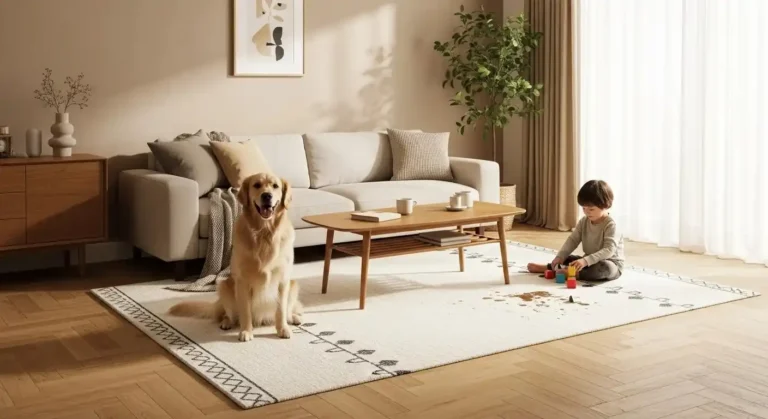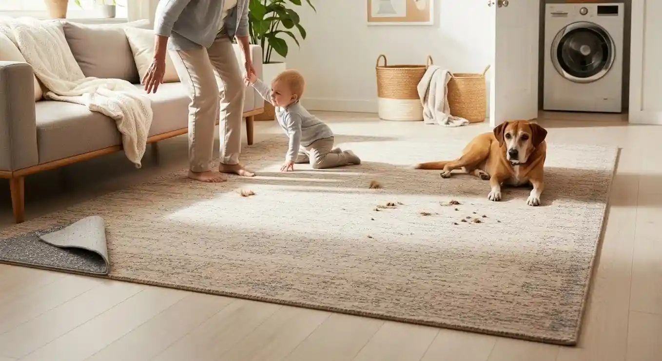 - Pet friendly washable rugs made for fur, accidents, and muddy paws